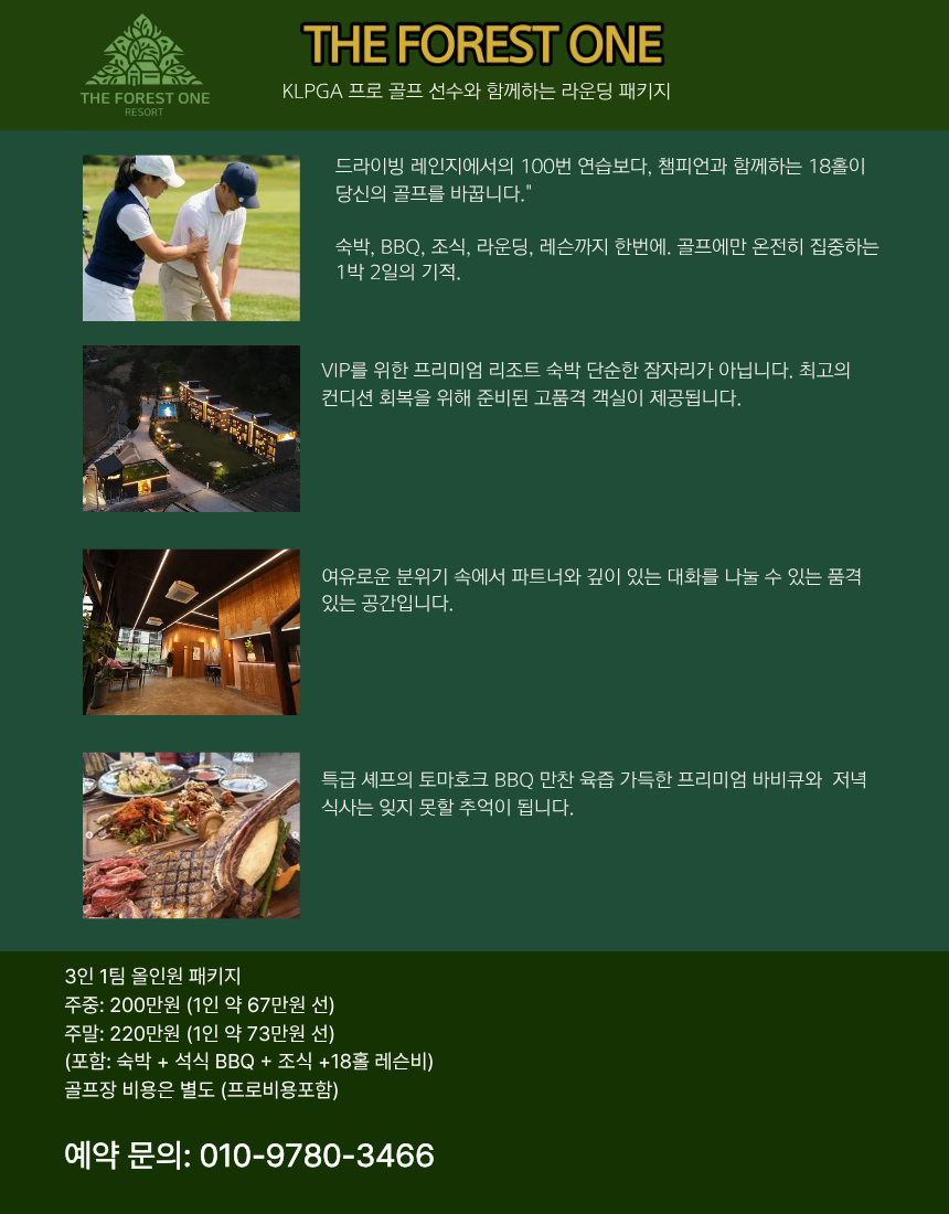 더포레스트원 KLPGA 프로 동반 라운딩 패키지 예약 문의 📞 010-9780-3466